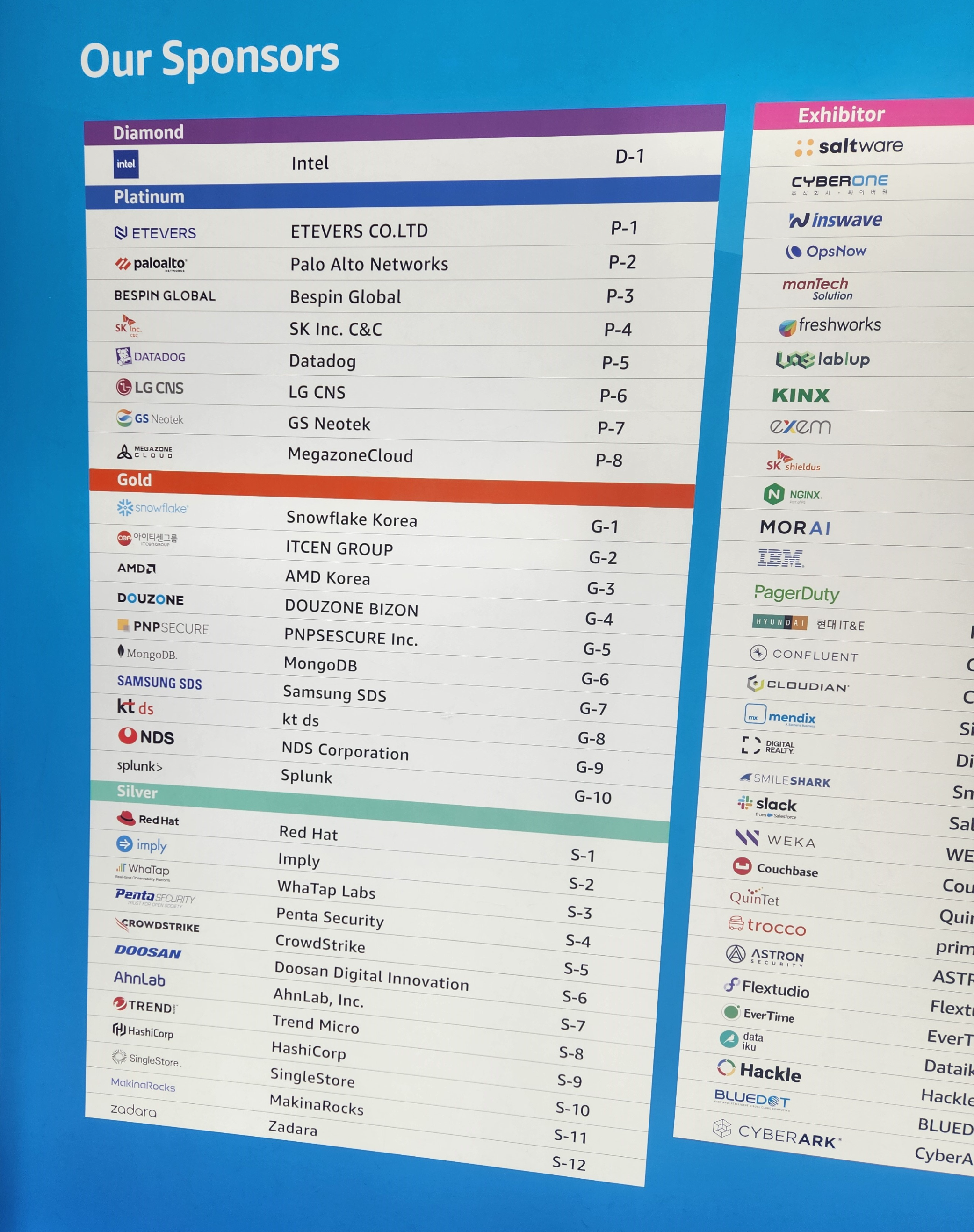 삼성 SDS, LG CNS, SK Inc. C&C , GS Neotek, KT DS, 현대IT&E, MongoDB, Nginx, Parger Duty, Data Dog 등 다양한 기업들이 summit에 참여하여 각자의 솔루션 제품들을 전시했습니다. 여기서 대표적인 제품군은 아무래도 CMP (cloud management platform), AI (LLM) 서빙 서비스, 미들웨어(API Gateway, Web Server)등으로 분류할수 있을것 같습니다.